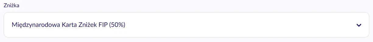 PKP sells tickets online with FIP 50 discount. During the connection search, the option “50% MKZ-FIP” must be selected as a discount for the respective person.