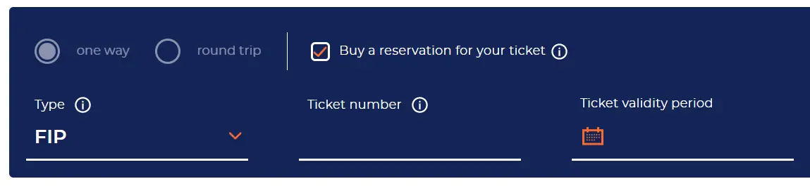 When traveling with an FIP Coupon, it must be registered in the customer account by providing the coupon number and validity period so that the reservation can be purchased: